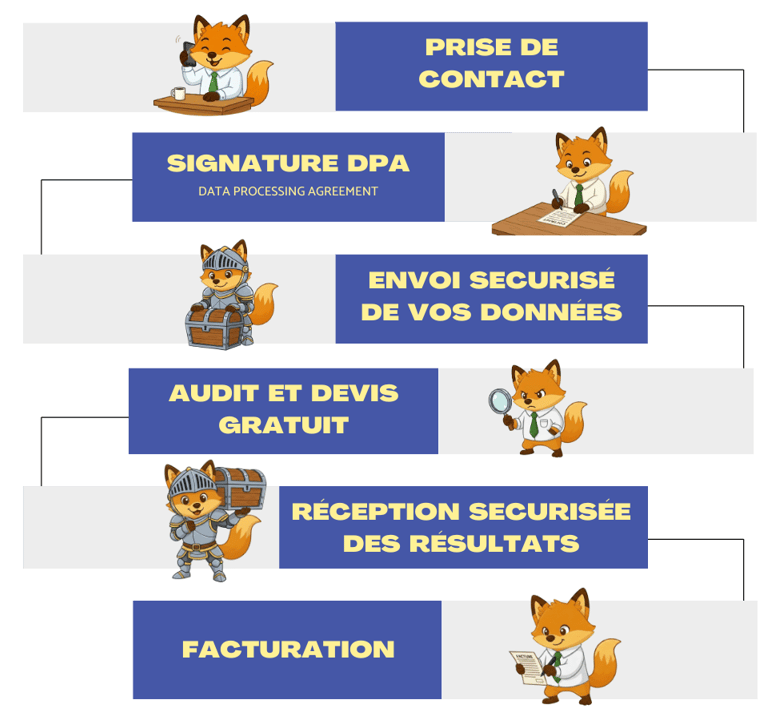 Ne craignez rien pour vos données : notre processus de réception / envoi de données est orienté autour de la sécurité de l'information.